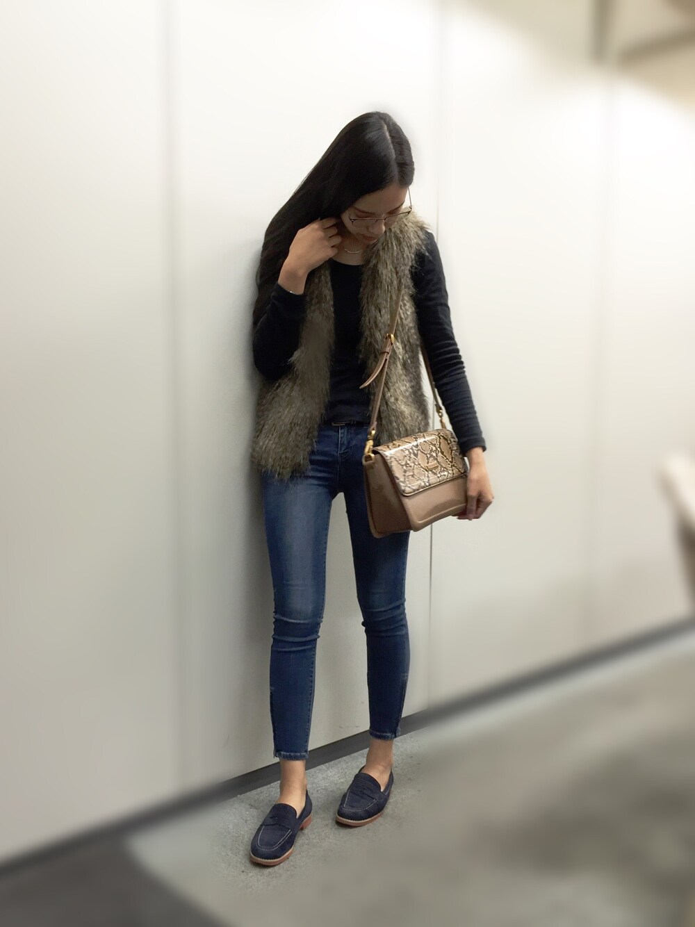 ずっと欲しかったファーベスト♪ プチプラでget😊 見た目暖かそうですが、 こういうのって本当はそんなに 暖かくないんです(´・_・`) だから、この時期に使えるのです(*^◯^*) ふわふわでお気に入り💓