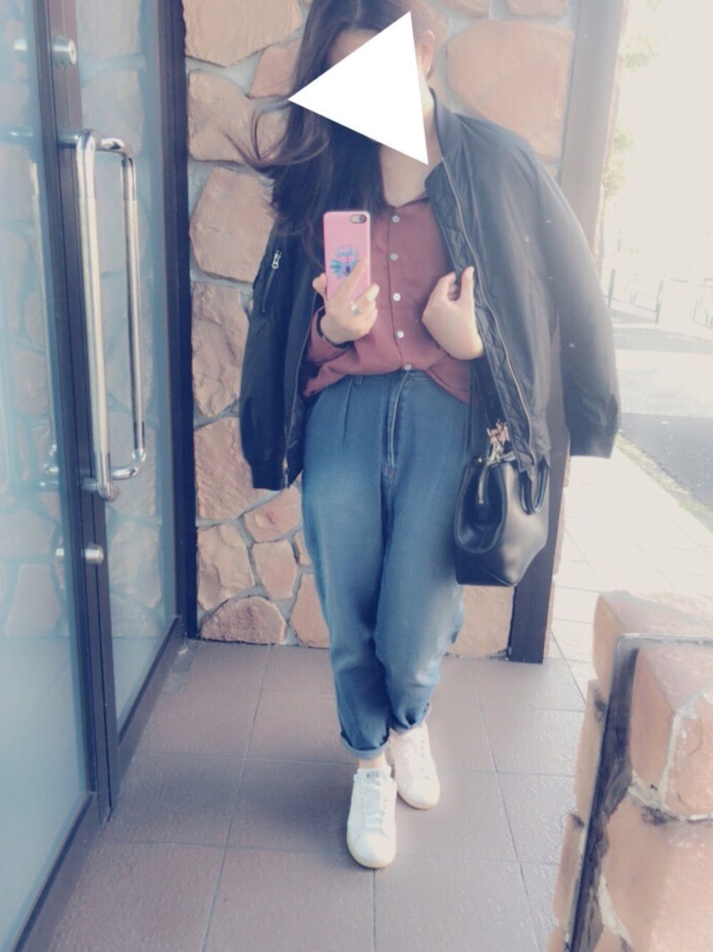 ⑅◡̈* こんにちは! 強風が伝わるかと思います🍃🌪笑 今日のコーデ テラコッタカラーのブラウス 抜襟になってて大人可愛いです💕 GUのデニムパンツ UNIQLOのMA-1 スタンスミスのスニーカー です! 新しいアクセサリー買いました! 憧れのagete✨💕 アクセサリーはブランドにこだわってたけど しまむら行ったときにピアス買っちゃった。。笑 300円という安さだけど高見えするかな? ⑅◡̈*