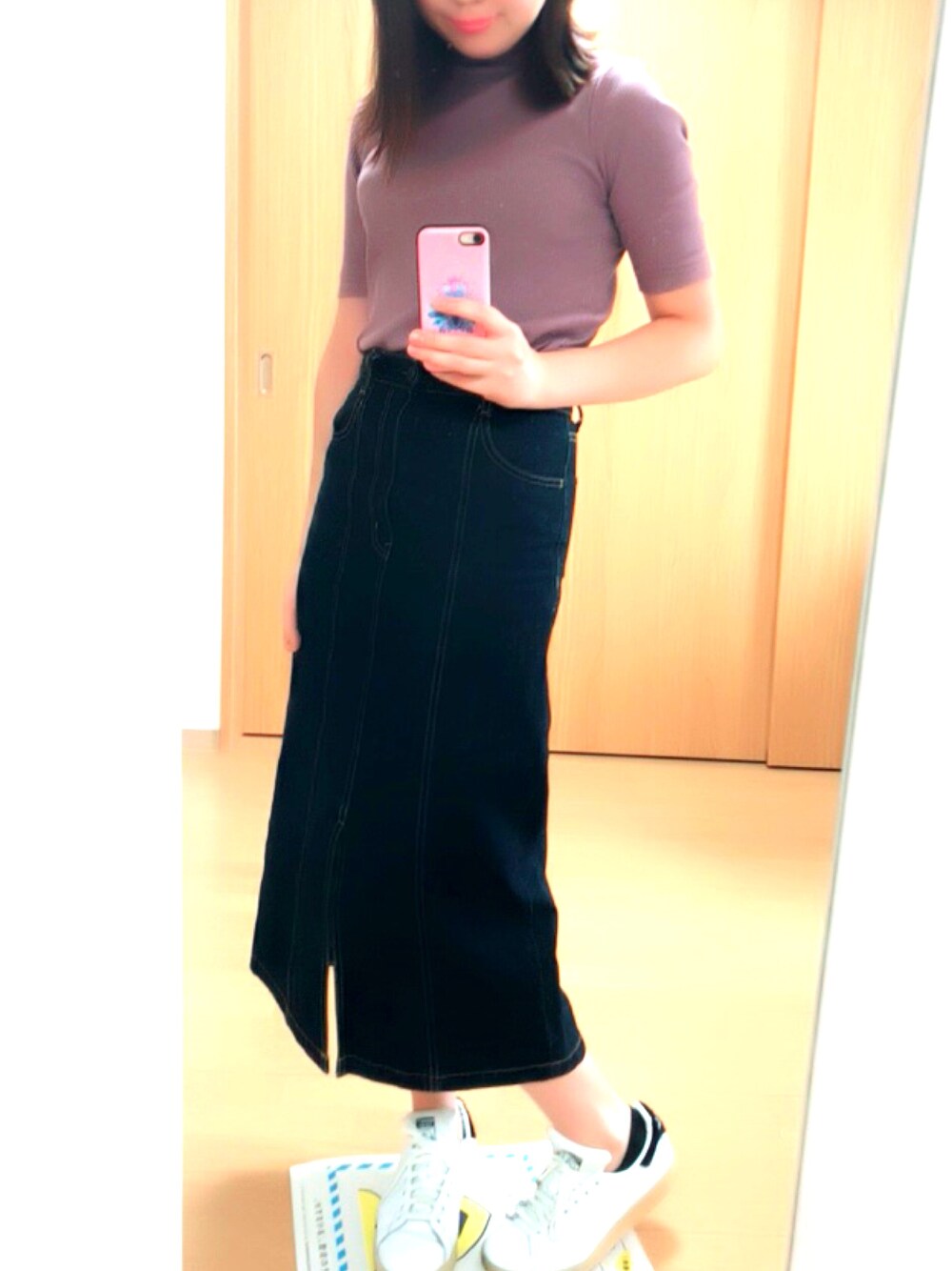 ⑅◡̈* おはようございます! たのしい連休でした〜😆 今日からまた仕事や〜💪💪💪 ootd𖤐 ユニクロのリブハイニット GUのデニムタイトスカート スタンスミスのスニーカー めっちゃプチプラ笑 ほんとはユニクロのやつキャメル買おうと思ってたんだけどこのパープルだかピンクだかのくすみ加減がとても可愛かったので急遽こちらに😍🍁 ⑅◡̈*