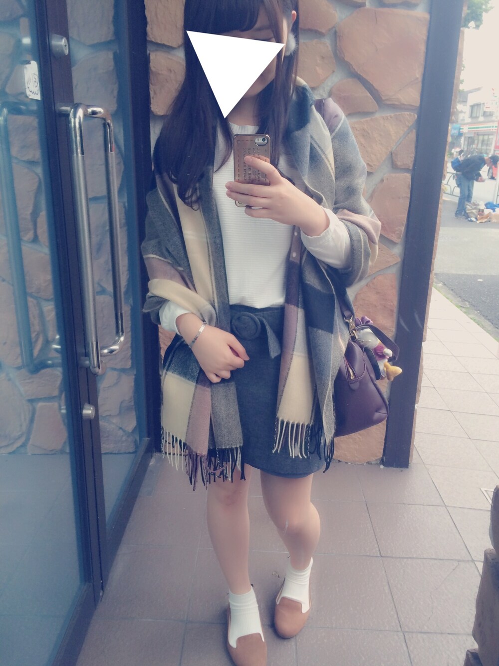 ☺︎ 最近シンプル。 トップスは肩フリルで袖はシースルーになってます⑅◡̈* 友達がファーのピアス褒めてくれてとっても嬉しかった〜 ドラマ「サイレーン」見てたら、最近の女の子は白ソックスを履かないって言ってたけど、余裕で履いてますごめんなさい。笑 ☺︎