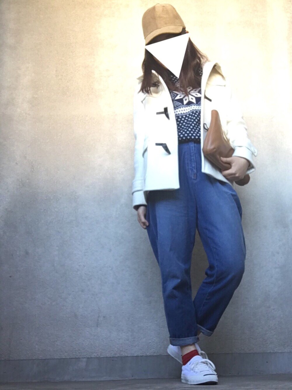 ⑅◡̈* こんにちは! 今日から冬休み〜🍊♡ でもおうちでお仕事DAYでした✏️💭 上下GUコーデ🙃 ノルディックニットはメンズのもの! デニムは安定のマキシマムジーンズ👖 カジュアルすぎないように 白ダッフルとクラッチにしました〜⛄️ キャップとスニーカーの時点でもうメンズだけど👨🏻笑 ⑅◡̈*