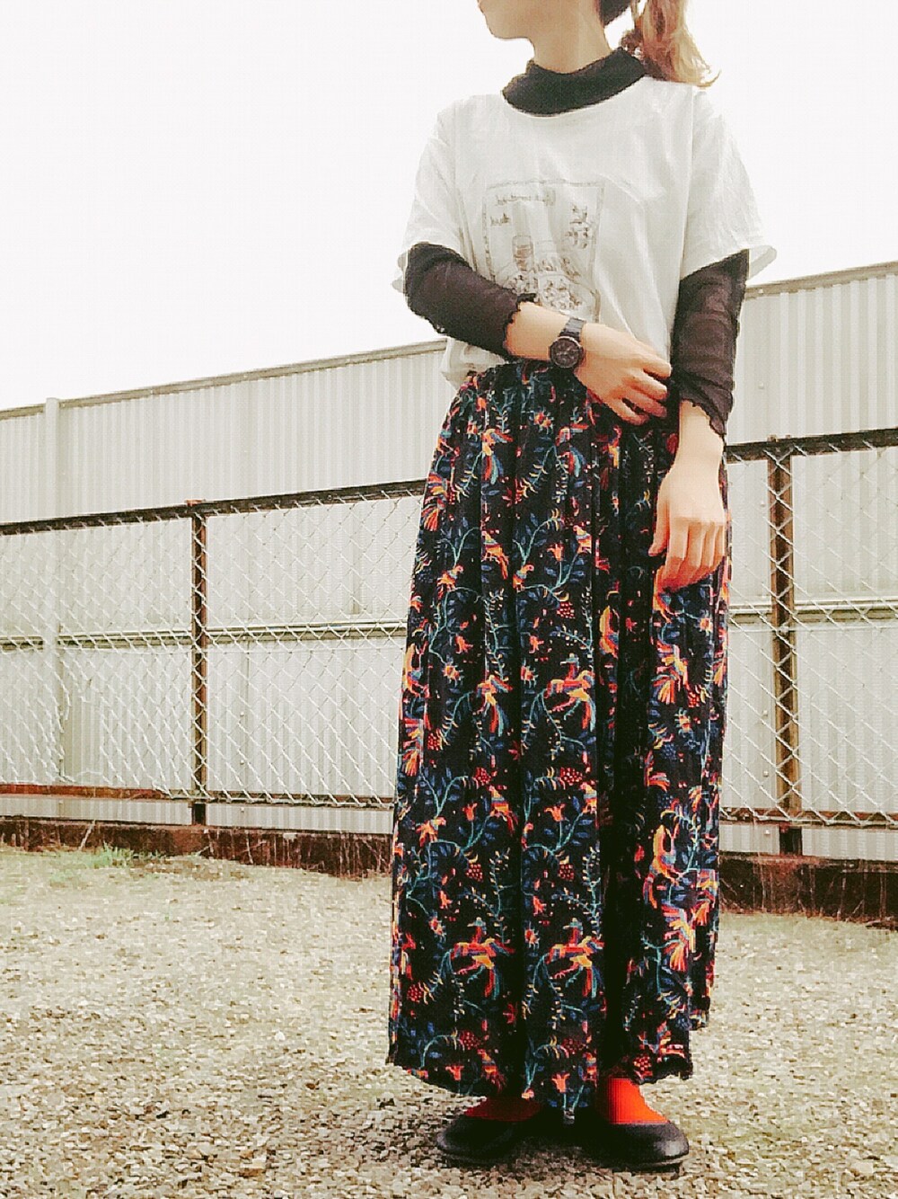曇になると少し肌寒い。。 チチカカのロングスカートは履きやすくて可愛いです。
