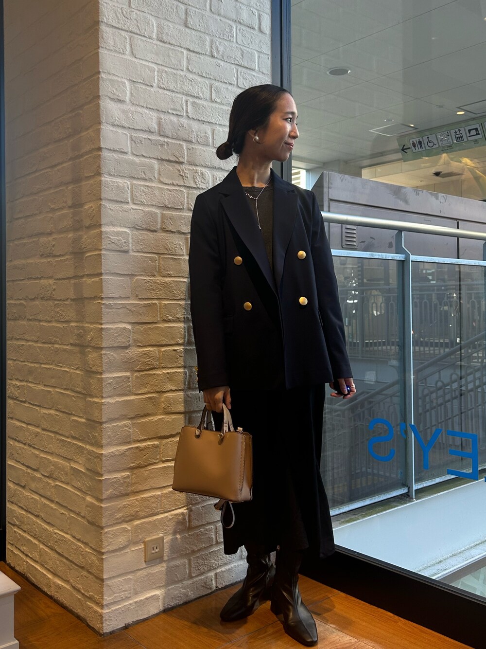 ドッキングワンピに紺のジャケットをあわせて少しカチッと感をプラス🌱 ニットとナイロン素材のハリ感のあるスカートがドッキングされていて1枚で様になるアイテムでふ! とても軽く着心地も楽です! 袖口とウエスト部分にラメが入っているのもポイントになります! 1枚で普段着使いに🤍ジャケットを合わせてお出かけ着に🤍