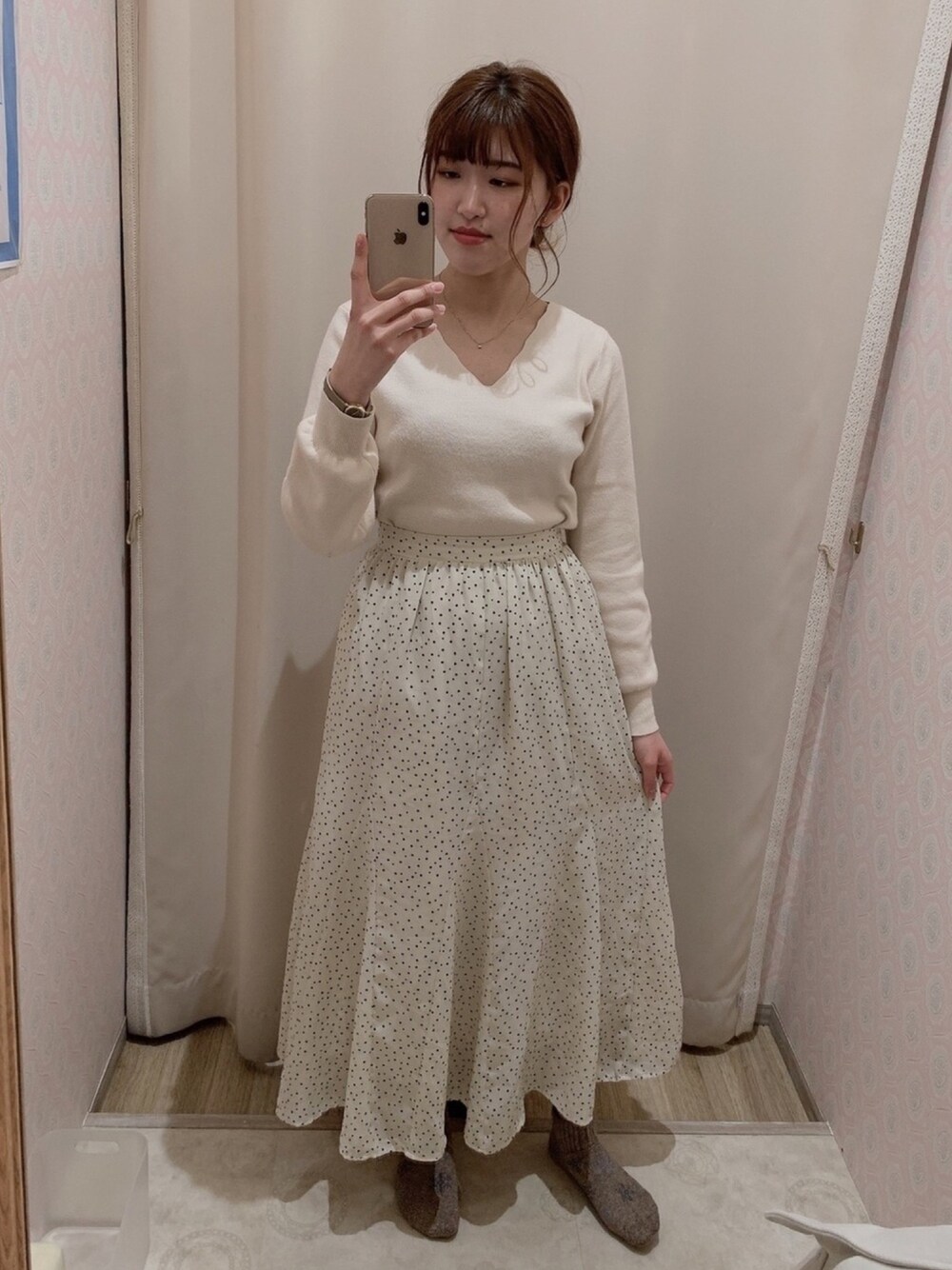 こばのニット/セーター「スカラップニットプルオーバー*」を使ったコーディネート