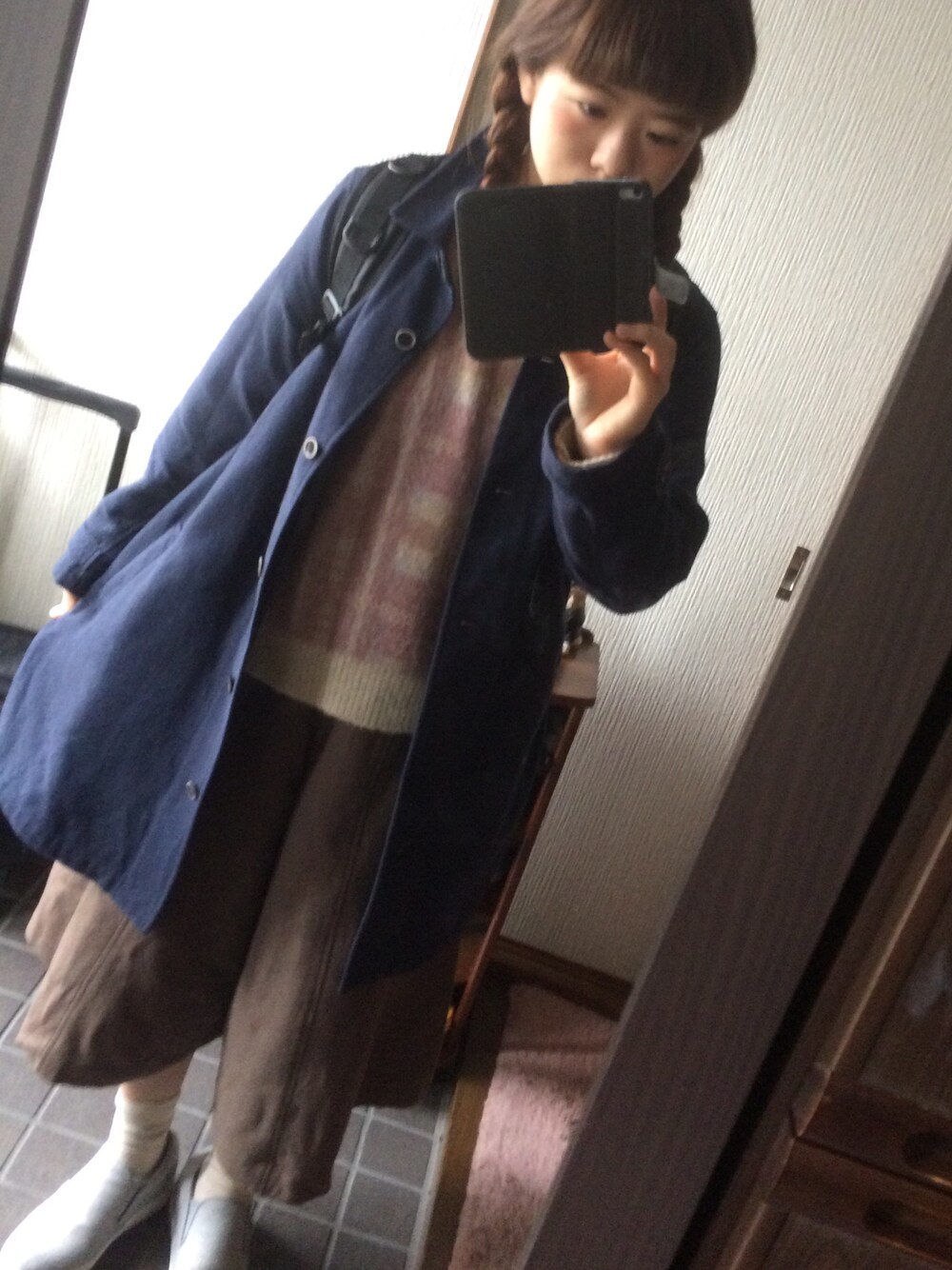 寒いですね 。 ehkasopoのピンクニットが 可愛くて暖かくてお気に入り ガウチョパンツ?は おばあちゃんに貰いました