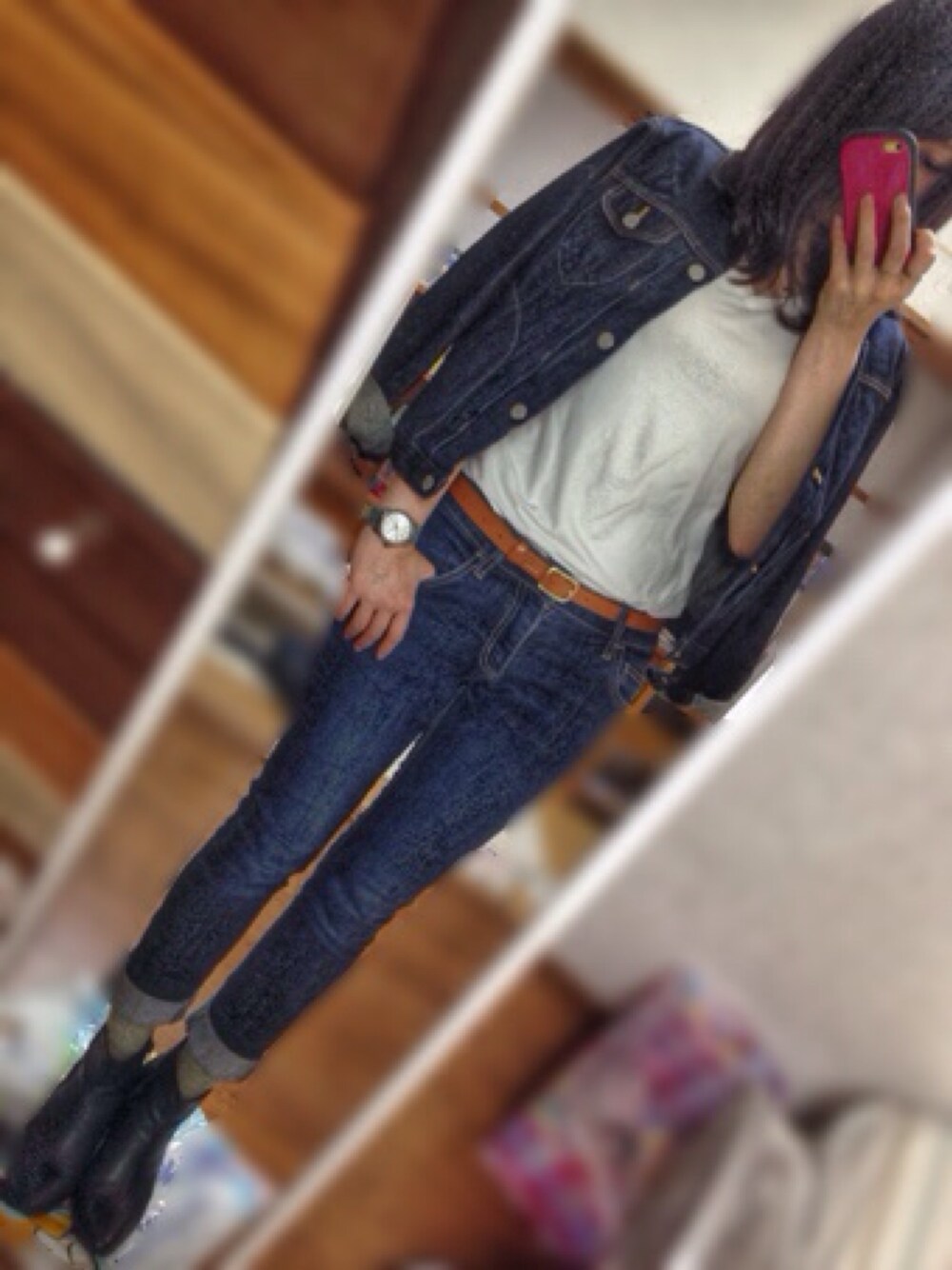 少し寒なってきたので デニムを羽織りました! 下もデニムにあわして デニムオンデニム(^O^)