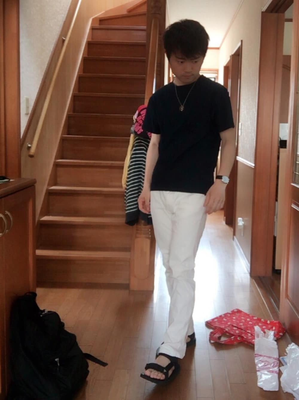 〈サイズ〉 Tシャツ:M パンツ:S スポーツサンダル:26 暑さに耐え切れず、Tシャツ1枚コーデ解禁!