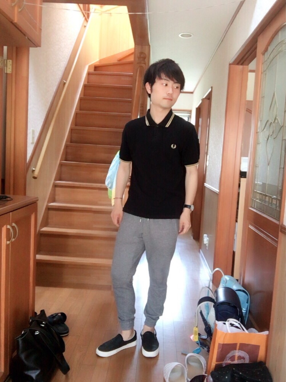 〈サイズ〉 ポロシャツ:38 パンツ:M ポロシャツ×スウェットパンツコーデ