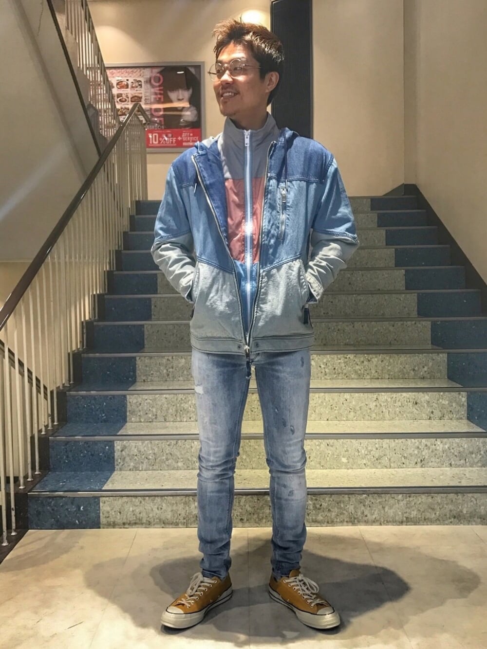 春らしくブルーでまとめたコーディネートです👕 デニム地のパーカータイプジャケットは他にはないデザインでオススメ🤘🏼 インナーに着ているトラックジャケットはさりげないピンクがいい感じです🐷 コンバースはct70です👟