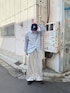 春らしい爽やかなブルーと、スウェットパンツの一癖あるディテールがお気に入り!