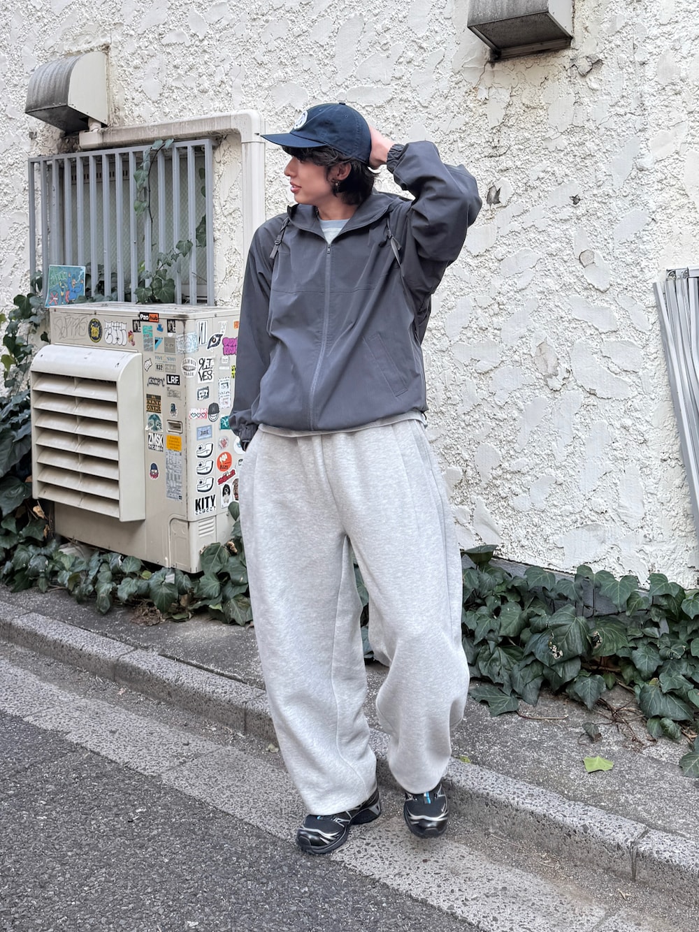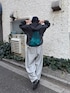 スウェットパンツとインナーにボーダーTシャツを合わせました。