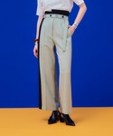ベルテッドツーフェイスパンツは、ハイウエストなのにきつすぎず、楽に履いていただける為オススメです。 ベルト調節出来、腰回りスッキリと履け、360度配色が素敵です。 ベーシックなトップスでも、スラッシュパイピングブラウスのように色味のあるブラウスとも相性抜群です。