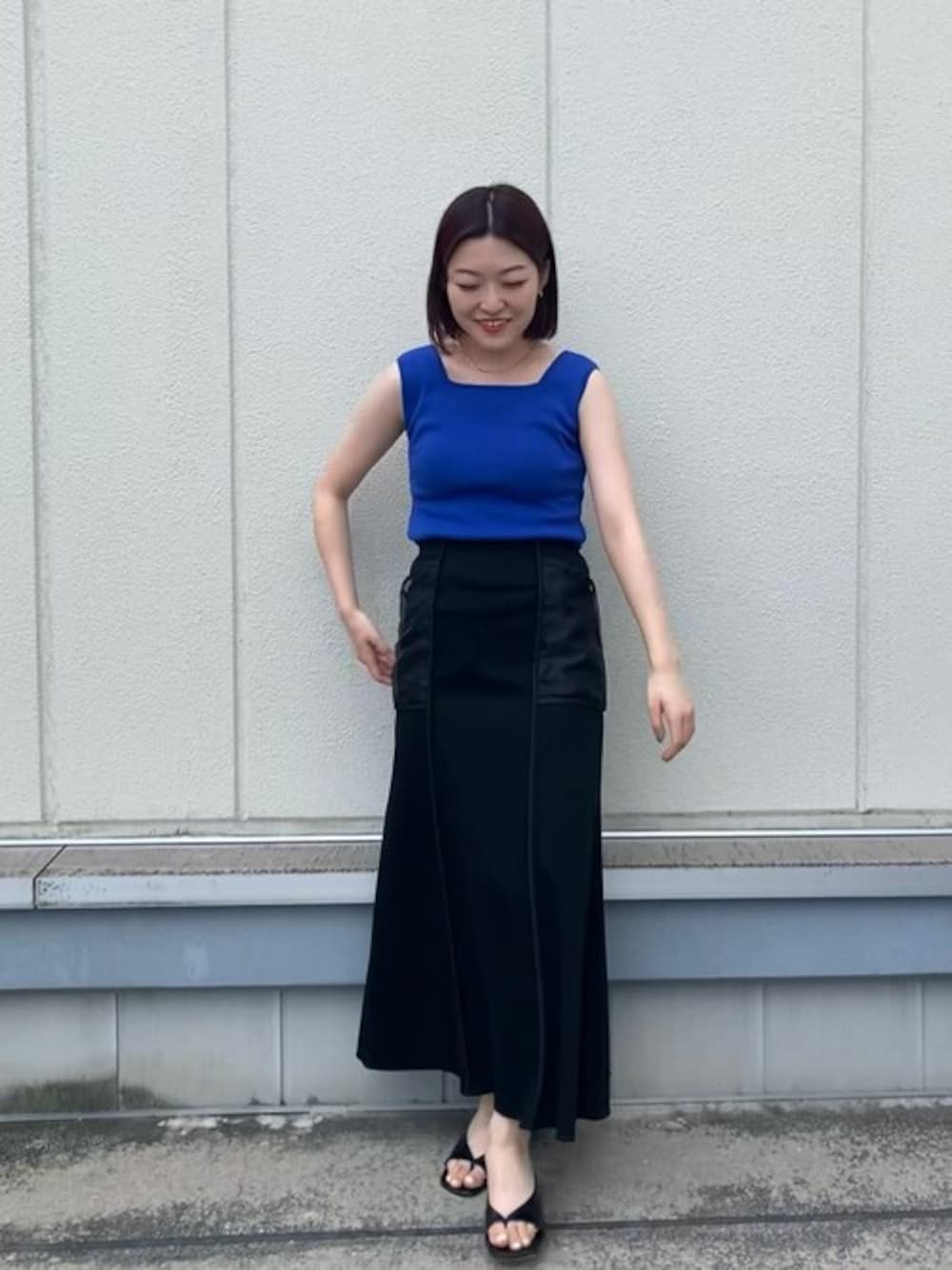 デコルテのカッティングが鎖骨をよりきれいに見せてくれるトップスです。二の腕は気になりにくい幅感があるので安心です。フレアスカートとのスタイリングの時はすっきり見せるためにINしました。