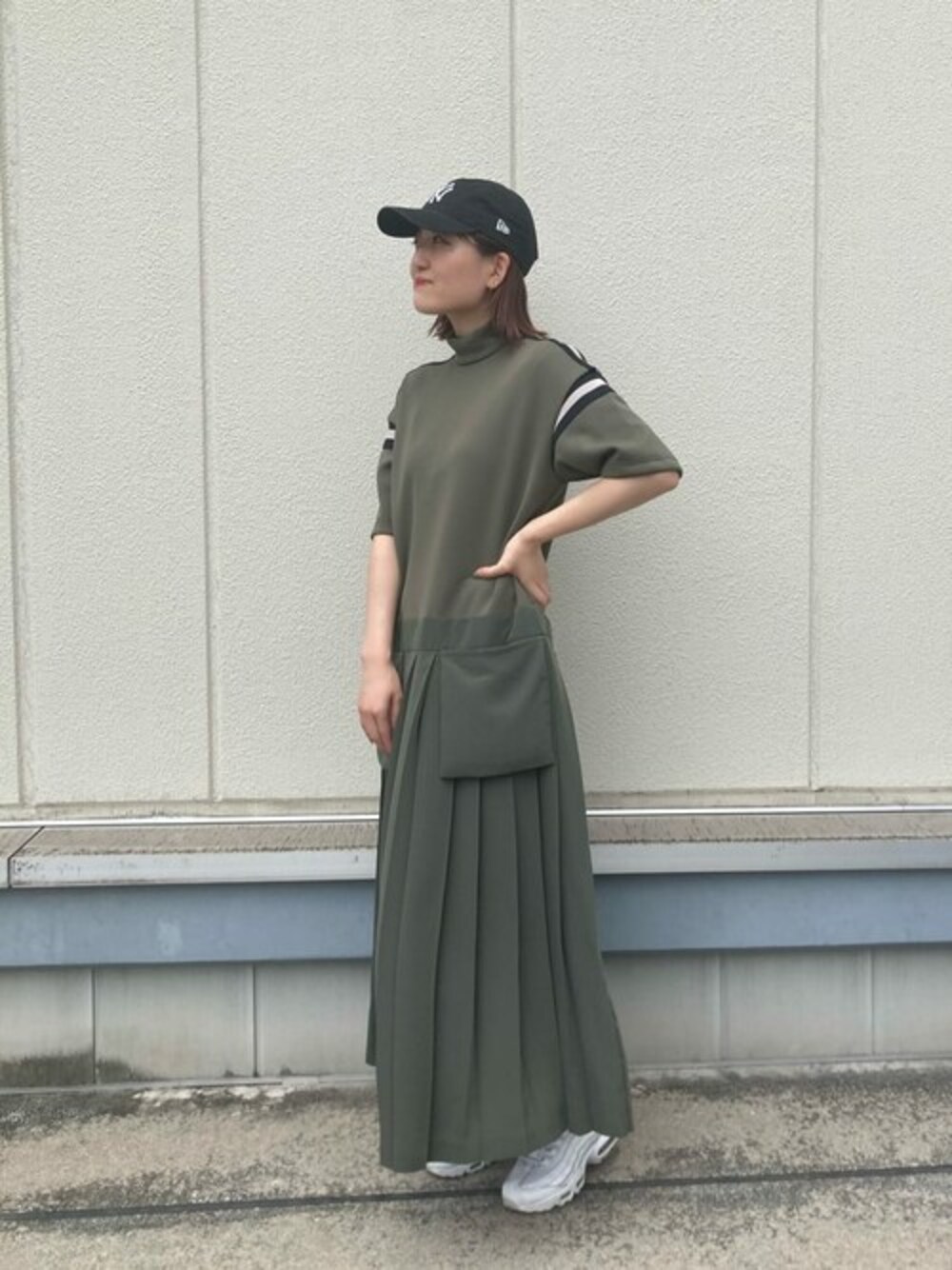 カジュアルスタイルでワンピースをスタイリングしました。高身長さんもばっちり着ていただける安心のロング丈です。肩のラインとポケットがあるので間延びせずすっきり着ていただけます