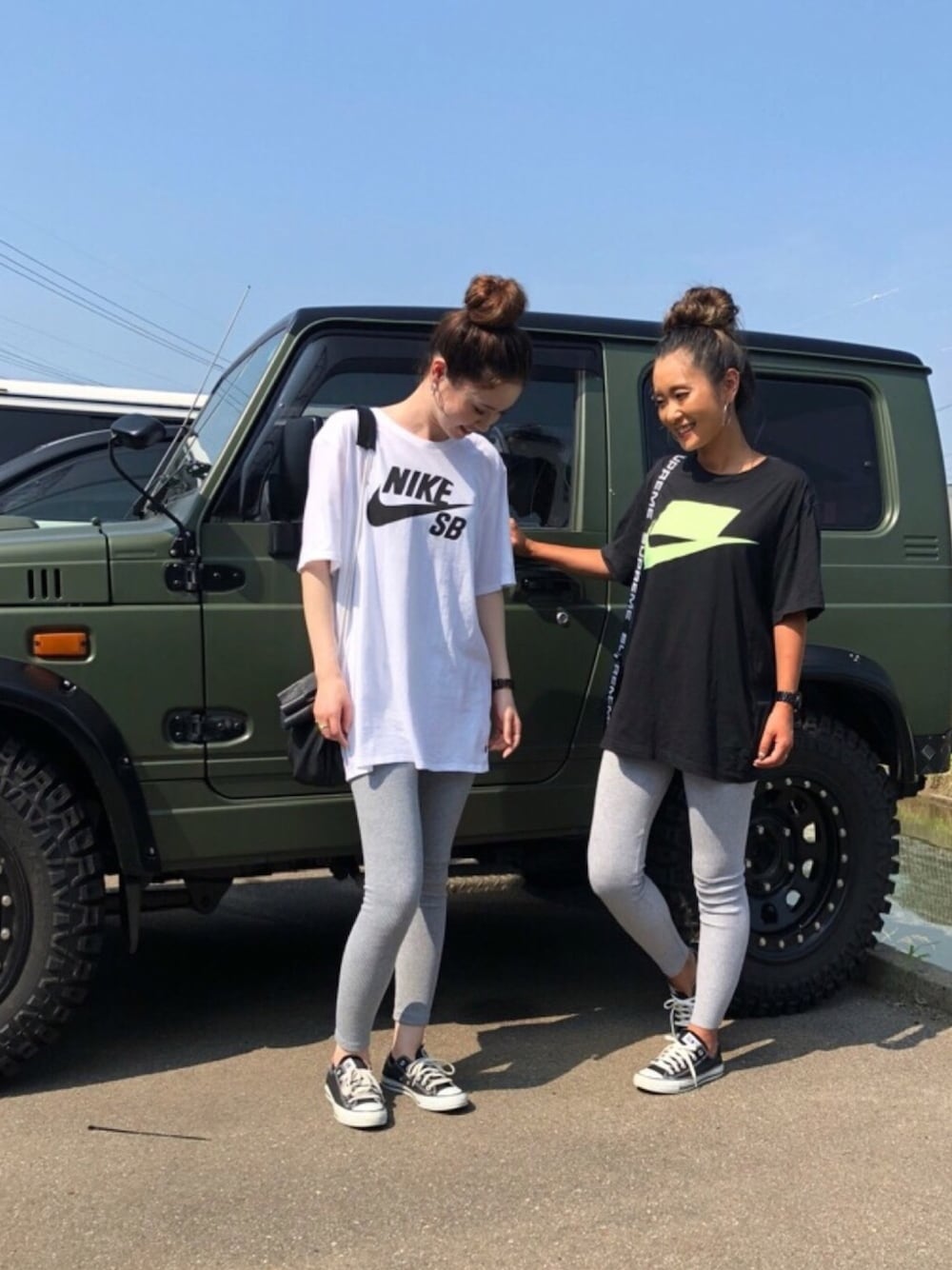 KAORIIIIIIIIさんとリンクコーデ💜 men's NIKE Tシャツでスポーティーに。 肌の色もオセロ(笑)