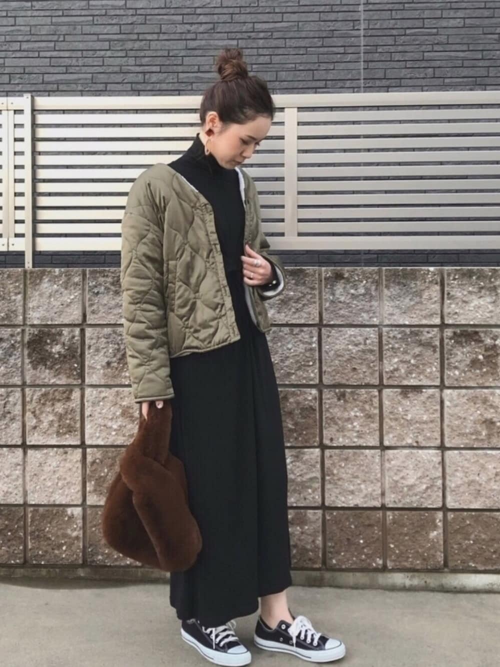 𝚊 𝚒のワンピース「ツイストタートルワンピース(フロントデザイン長袖タートルネックロング丈ワンピース)」を使ったコーディネート