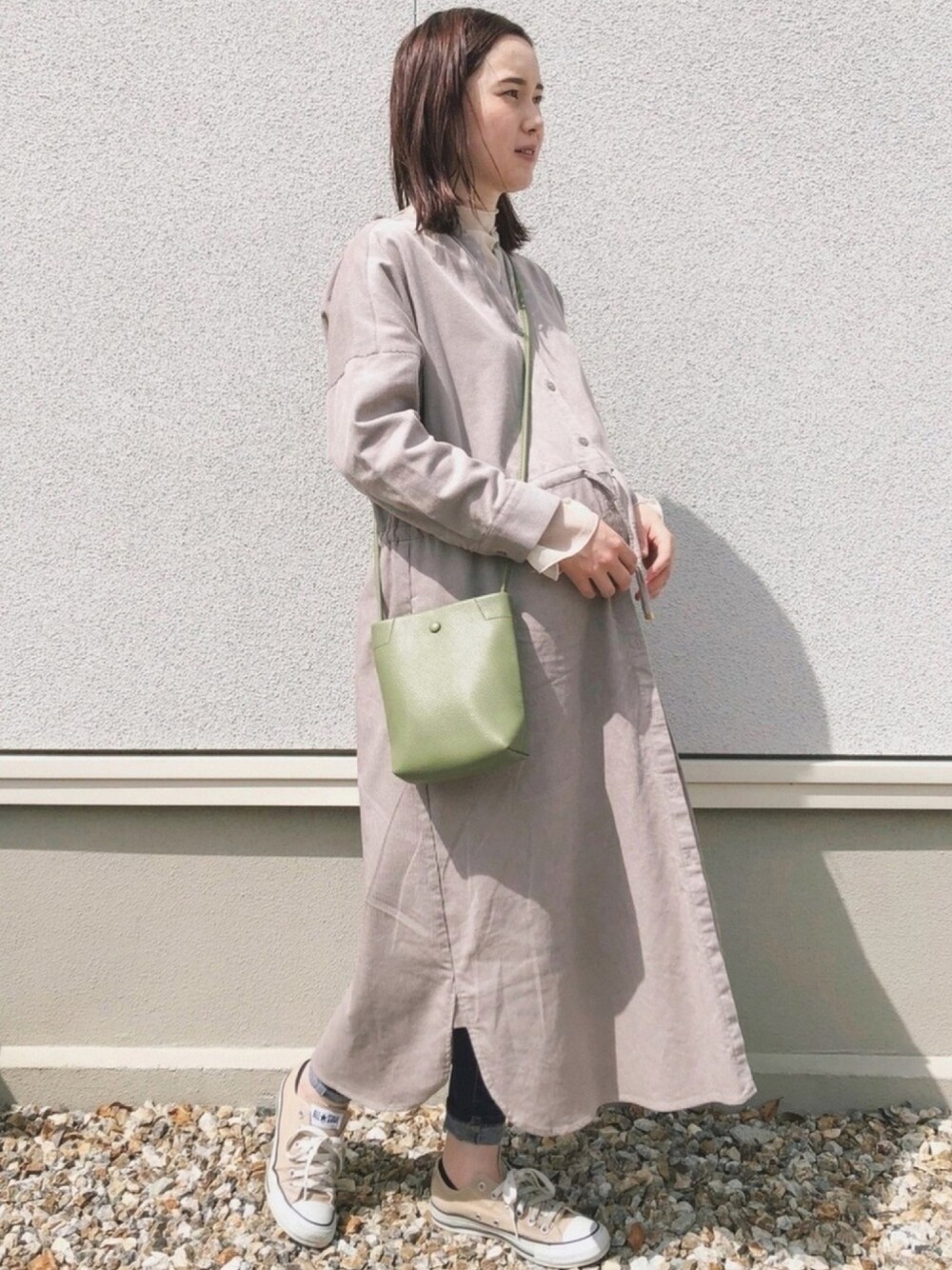 37週突入コーデはゆったりワンピ🤍 羽織としても使えて🙆🏻‍♀️ シアーブラウスレイヤードがポイント🤞🏽𖤐