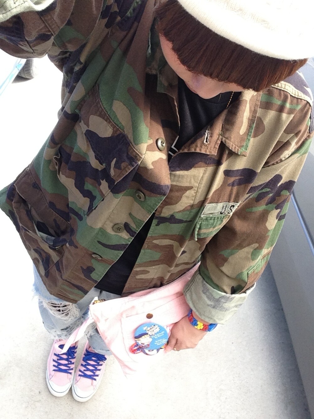 おかちゃんぴんのミリタリージャケットを使ったコーディネート