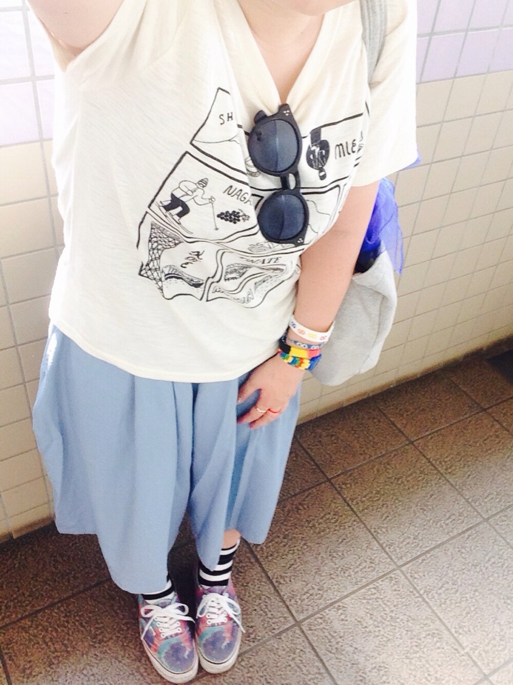 昨日の分! 関ジャニ∞のリサイタルで 福井までばびゅーんと 行ってきました(^O^) 友達みんなで ツアーTシャツ着てました。 なんだか足りないな〜と思って ボーダー靴下とタイダイのVANS *\(^o^)/* とってもすてきな時間でした♡ そして、私の夏は終わりました。笑 しばらくは 普通の女の子に戻ります。笑