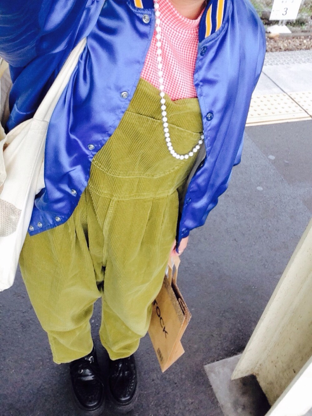 おかちゃんぴんのスタジャンを使ったコーディネート