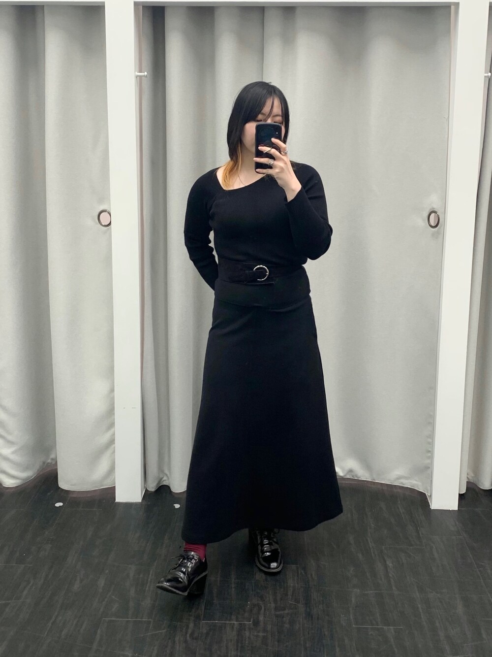 シンプルなブラックコーデ☻ トップスのアシメニットはセールでゲット✨