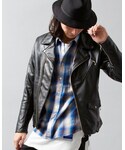 yshd.10のライダースジャケット「MT∴ シープレザー ニュールック ダブル ライダースジャケット◇§」を使ったコーディネート