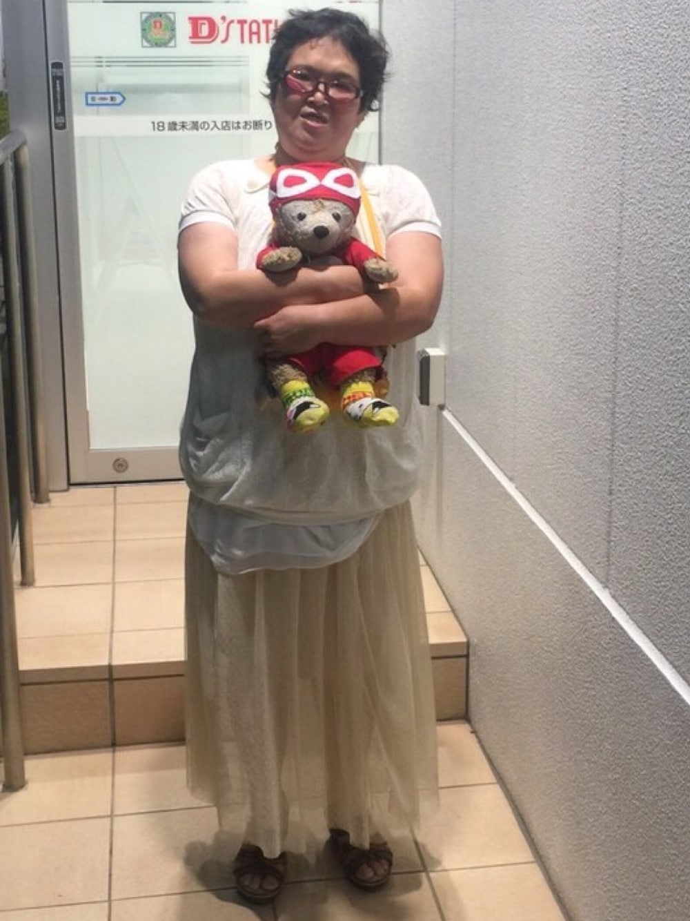 今日はお気に入りのぬいぐるみ、 ダッフィーの「たかよ」と一緒に投稿です。 今回は久々にホワイトコーデにしてみました。 トップスは、分かりづらいのですが、 左右に小さいポケットがついてます。 元々トップスにはポケットがついていて欲しいと思う私。 これはホントにお気に入りのトップスです。 スカートもお気に入りのもの。 何げに日焼け防止にもなります(笑) これから女子会に行ってきます! ちなみに、撮影場所はパチンコ屋さんです(笑)