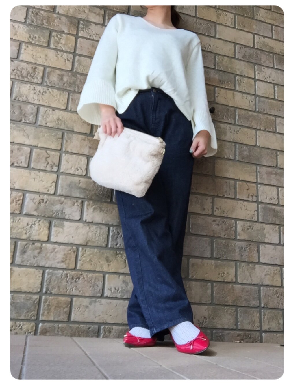 saya.のニット/セーター「・ワイドスリーブVネックプルオーバー」を使ったコーディネート