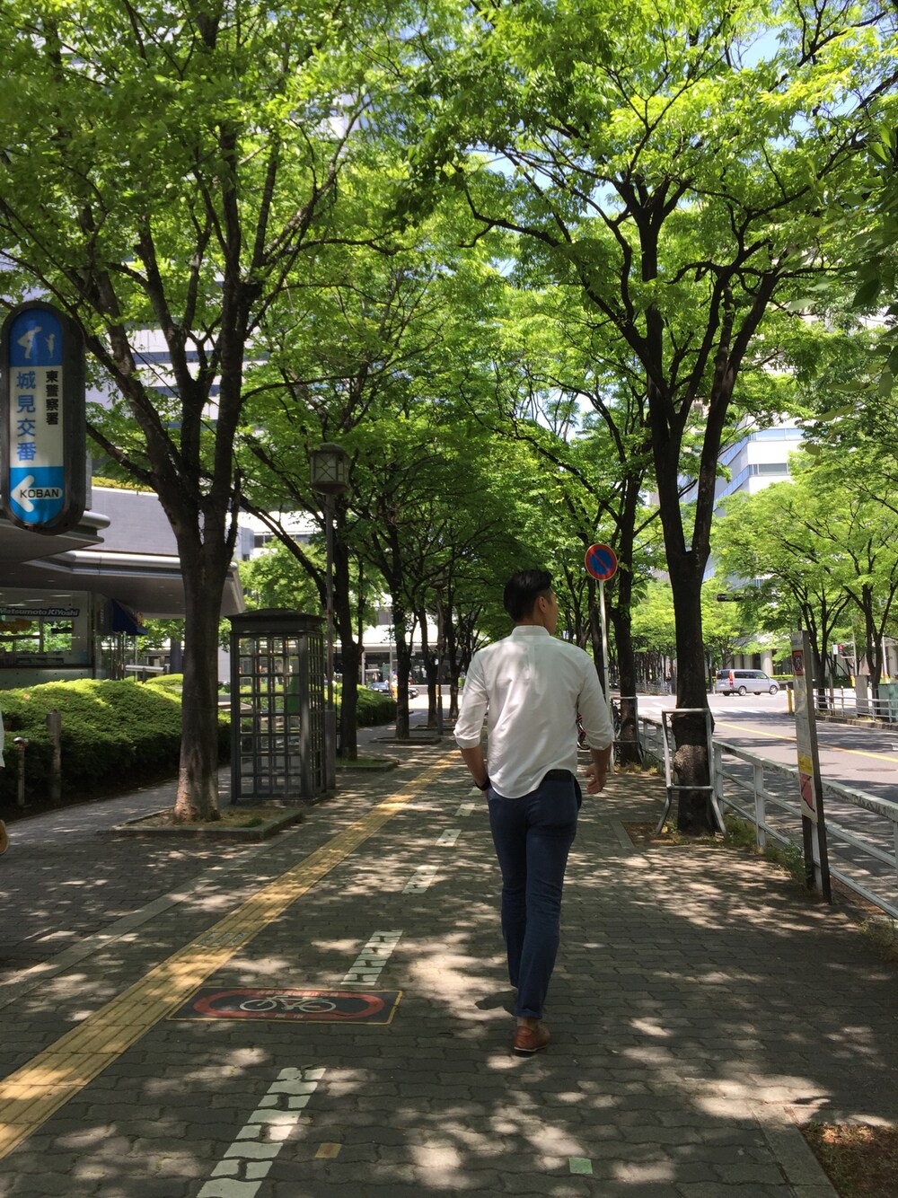シンプルに着こなしたい方! ショート丈にこれから流行りのブルーのパンツ
