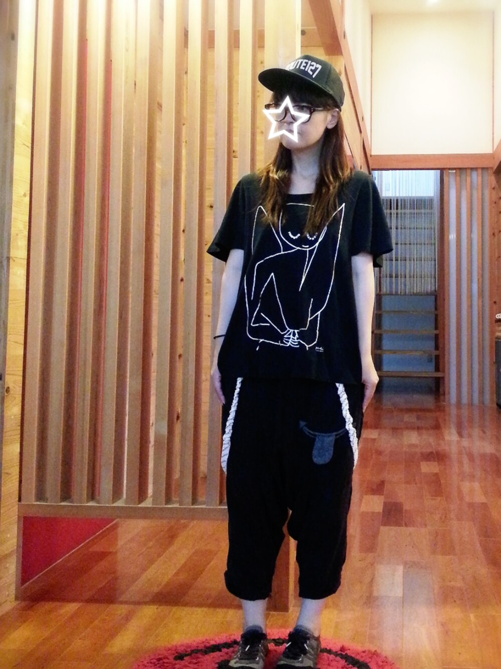 オールブラックコーデ!! キャップ→ライブグッズ