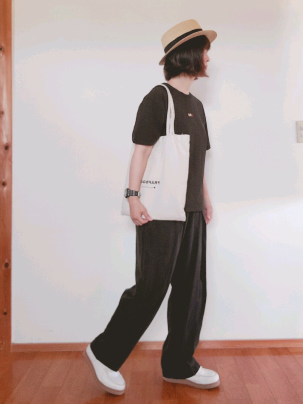 こんにちは(^^) 連続投稿131日目。 今日はオールブラックにホワイト合わせ。 モノトーンメンズライクで! オールブラック●ホワイト○カンカン帽👒 いつもコーデを見て下さってありがとうございます。