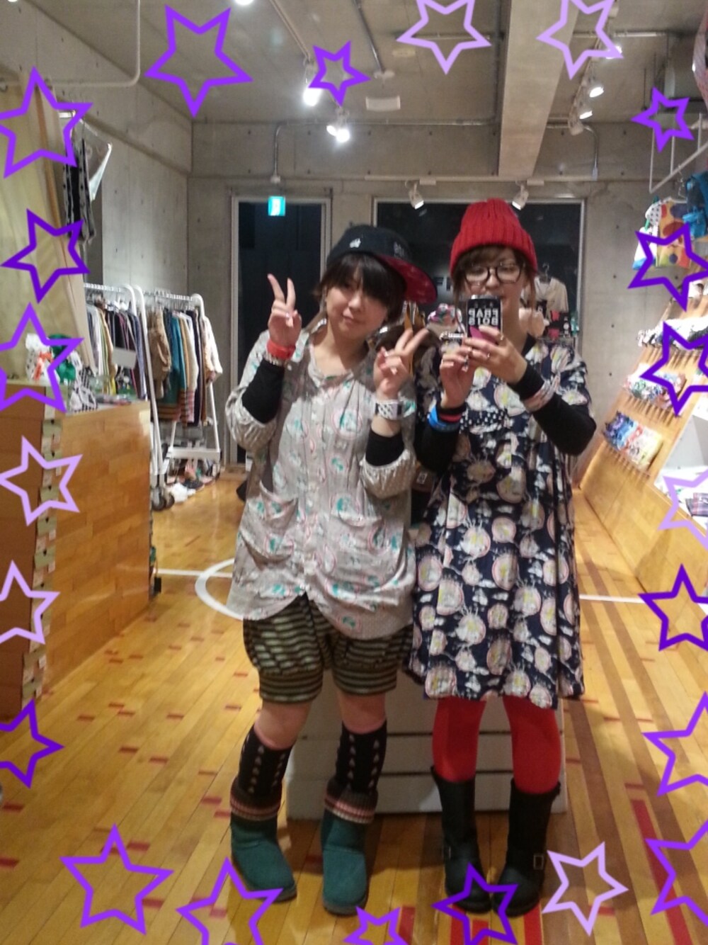 久しぶりに購入した柄ワンピ。お気に入り! 足元はカラータイツで。 ニット帽の色も同じにしてみました。