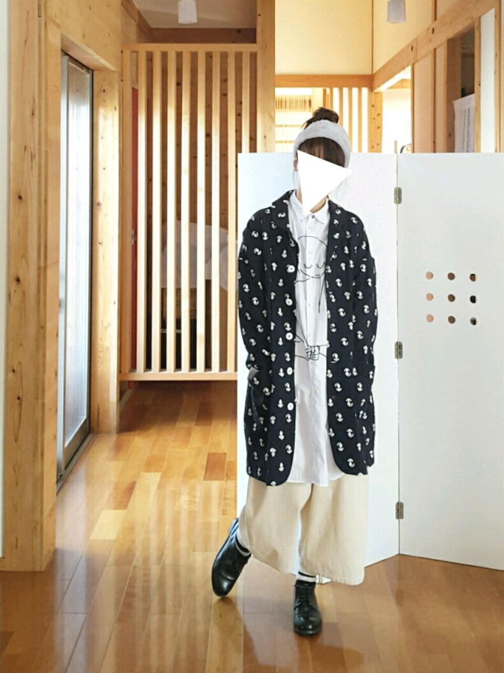 おはようございます(^^)/ 本日はホワイト×ネイビー☆ シャツワンピ×ワイドパンツ×チェスター! オーバーサイズコーデです!