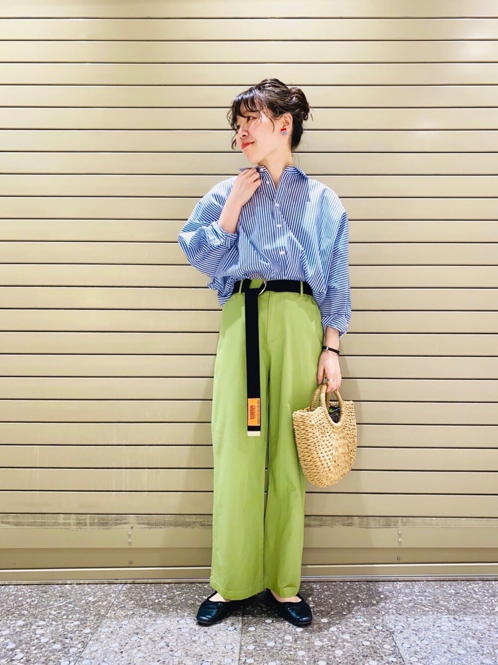 ♡&+いつもありがとうございます🙌💕 カラーパンツcoordinate☺︎ ベーシックアイテムのチョイスでカラーパンツが映えるスタイリングに* グリーン大好きな私がどうしても撮影にあたり穿いてみたかったこのパンツ…とにかく色が可愛い!!! 明るいけど派手ではないし、ナチュラルにもきれいめにも使える色、素材、シルエットだと思っています☝︎ 今回はこの子が映えながらも全体的にちょっとだけ主張を笑笑 ボーダーTもありだと思いましたが、ドルマンのストライプシャツを合わせてきれいめとルーズ感を演出し、リングベルトを合わせてきれいめな印象を抑えさせてカジュアル感を強めてます〜 ベルトはリングに巻き巻きしてロゴのオレンジが見えるように垂らしています。 ブルー、グリーン、オレンジ、ブラック、鮮やかはっきりした色が並んでhappyな気分になれそうです♩ 取り敢えず、バッグ悩みに悩んでこれでしたが、個人的に見返してみて今の気分がバックパックかちょっと大きめトートが良かったなぁと思ってるところです〜 コーデ写真のストックあと1枚しかない… お家で撮ったものはここにドドンと載せることはしないので、更新するのは日記かなー? 日記はまた着こなしテクや小物づかい諸々更新したいですね!! まだ内容決めてないので何にしようー🌀