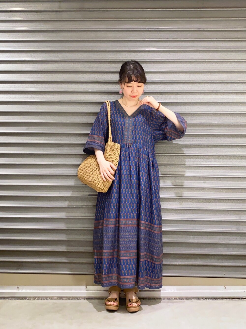 ♡&+いつもありがとうございます🙌💕 先日の出勤coordinate☺︎+👜 鮮やかなカラーのリラックスワンピで夏気分を上げて* 今回はとある日の出勤styleに店頭のバッグを拝借して撮影してます〜 表地も裏地も私の大好きなコットン素材で作られている着心地抜群なワンピース♩ かなりゆったりしてるのに切り替えがあるデザインなので着られてる感が軽減されますね☝︎ 襟元のパターンのVラインがあることでスッキリ感UP☑︎ ブルーにチェリーレッドとグリーンのカラーの柄がよく映えて1枚で主役になれるはずです笑 今回イヤリングはワンピースに合うように私物のビーズ刺繍モチーフを選んで、Vネックの開きをカバーするネックレスも忘れずにON✔︎ バッグはカゴやペーパーなどナチュラル感あるものを選ぶとこちらのワンピースのカラーには馴染みやすくておすすめです◎ ワンピース投稿続きすみませーん…っ!!! 次回はワンピースじゃないのでご安心を←?笑 因みに今回のコーデに使ったイヤリング、すごく可愛くてお気に入りなんです…なかなか買えない作家さんのものでいつかまた買える日を待ち望んでます*