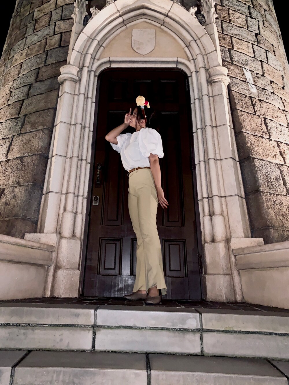 久々の投稿です🙌🏼 今回はプーさんコーデなので🤍×💛にしました! プーさんのカチューシャ可愛い❤️ 黄色のパンツ初めて使ってすごいよいです!ギンガムチェックなのがまた可愛い❤️