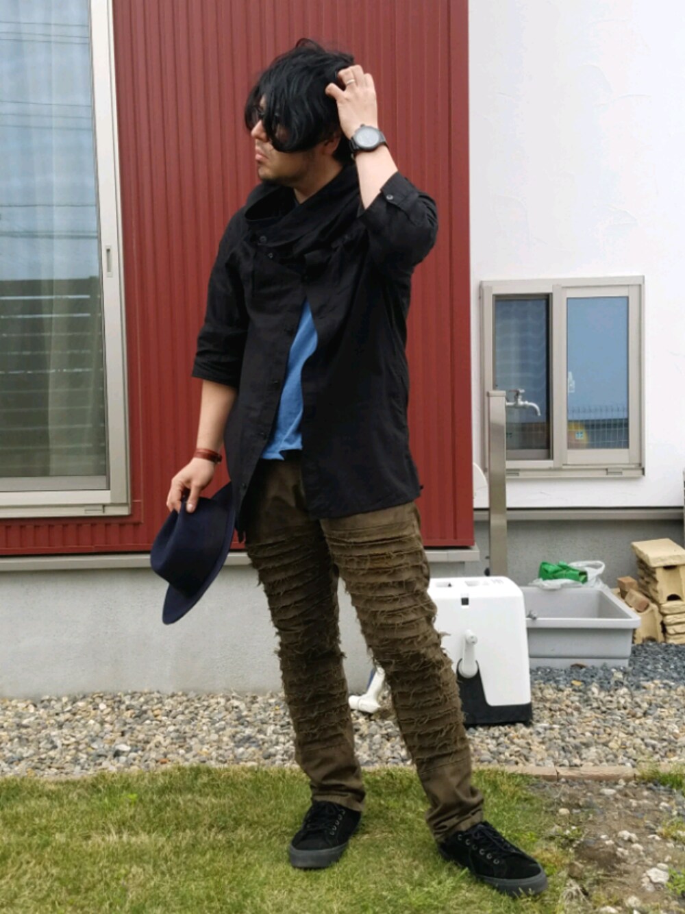 午後は風が強くてハットが飛ばされちゃうから、手に持ったところです。 今日はSIVAメインのコーデです。シャツのデザインは変わってるし、クラストパンツもインパクトありますね! 激しい雨が朝まで続くみたいですが、明日は早朝からの仕事... 憂鬱です😩 今日の一曲 ZENIGATA MARCH/DALLAX スカコアバンドで好きなバンドと言ったらダラックス。1stアルバムは何回聴いたことか。その1stの最後に入ってる曲です。 憂鬱な時はスカダンス踊って忘れるんだ💃