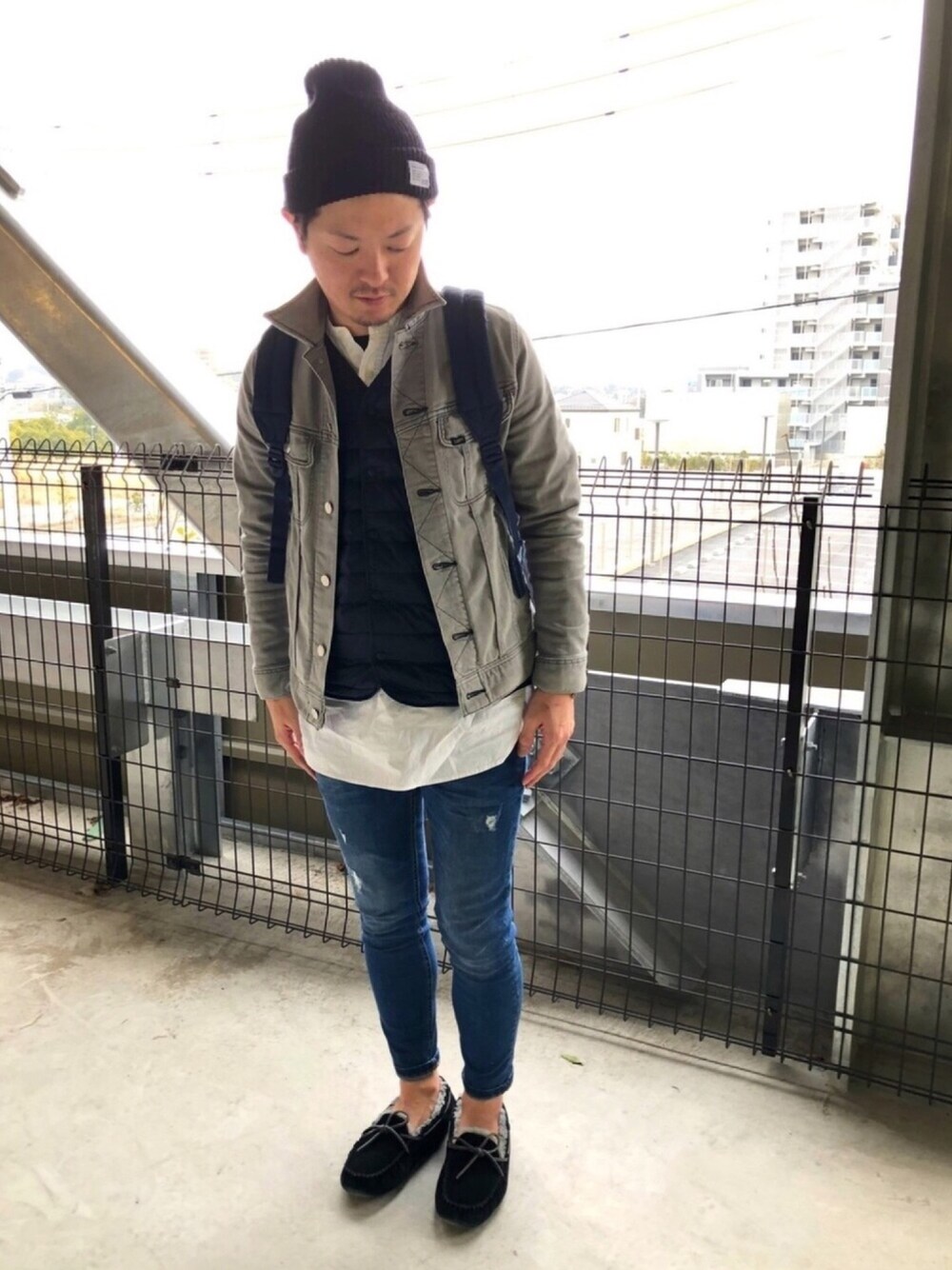 yosukeのニットキャップ/ビーニー「BAYFLOW/アクリルリブニットワッチ 1X1」を使ったコーディネート