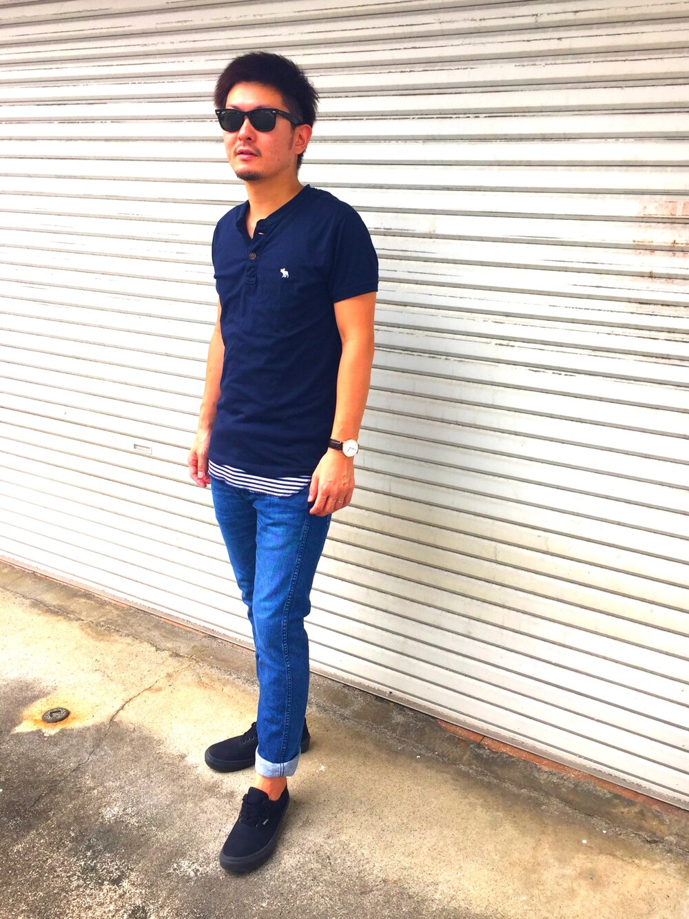 こんにちは✨ 今日は何も予定がなく、朝からずっとダラダラし、近所に買い物へ出掛けただけです😵 今日のコーデはシンプルですが、レイヤードしたボーダータンクトップでアクセントつけました👍