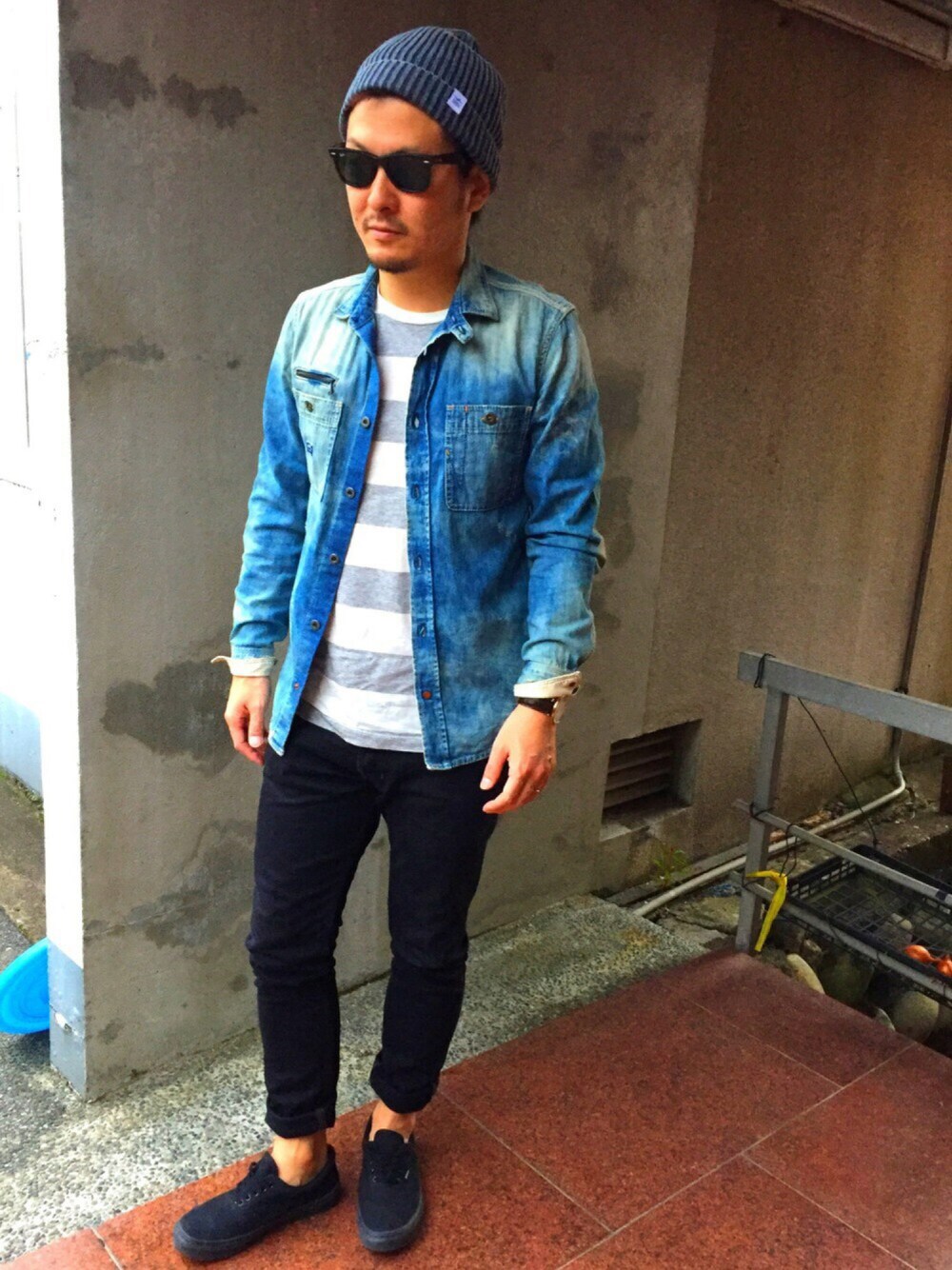 yosukeのニットキャップ/ビーニー「BAYFLOW/フェイドニットワッチ」を使ったコーディネート