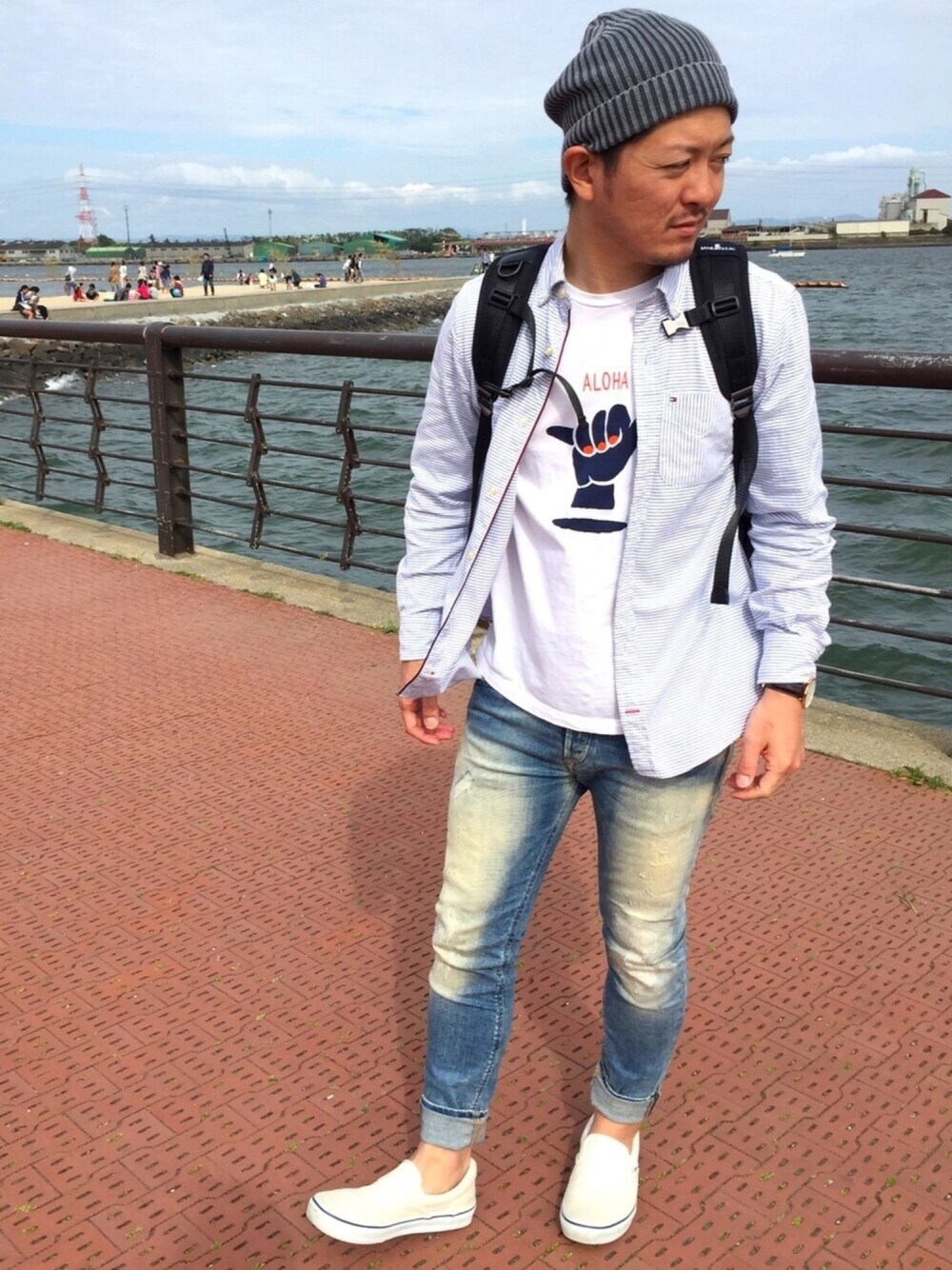 yosukeのニットキャップ/ビーニー「BAYFLOW/フェイドニットワッチ」を使ったコーディネート