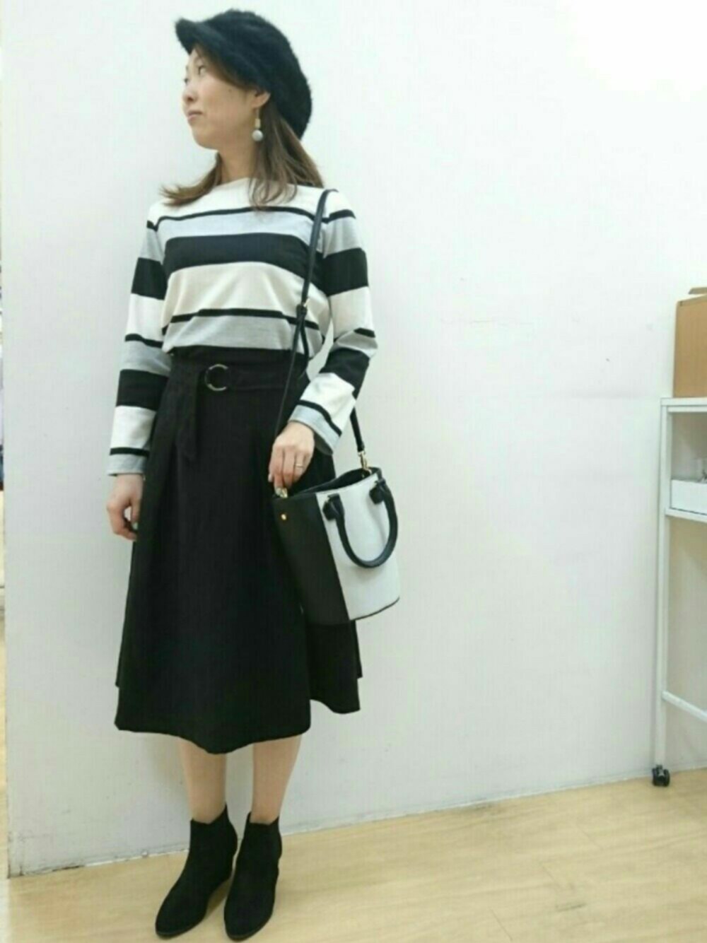 カジュアルに見えがちな ボーダーも、黒スカートと 合わせればエレガントな印象に♪