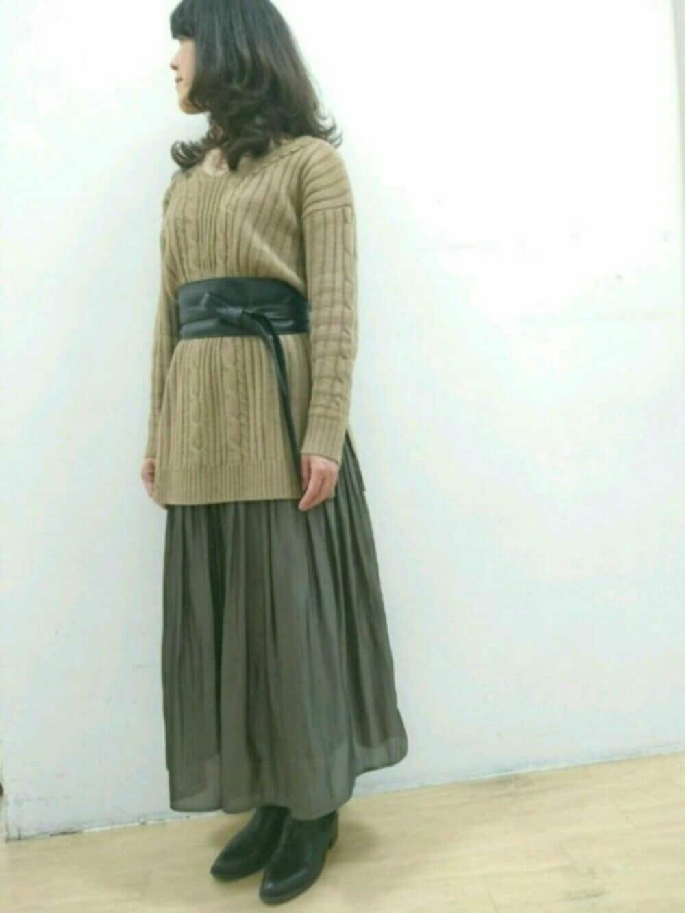 今週も台風の影響で週末は雨…😭 そんな時もオシャレして 気分転換できると良いですね♪ ニットワンピにロングスカートを合わせるのが今年流✨ウエストマークでスッキリと(^^)v Kさん:身長159㌢