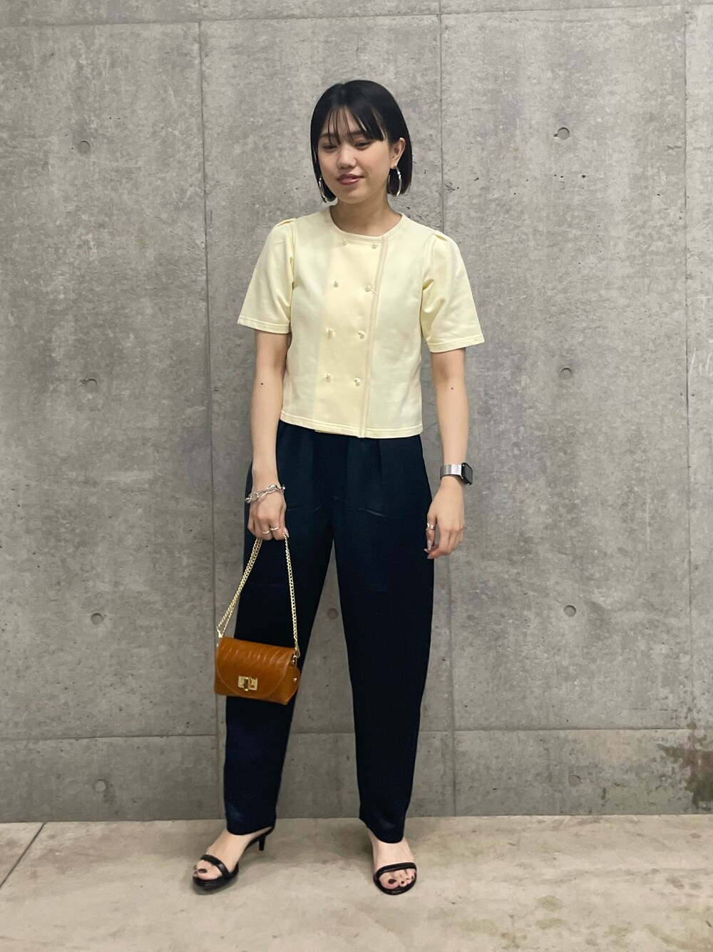 yoshimi(fredy 横須賀店)のカーディガン/ボレロ「【fredyemueフレディエミュ】W開きパールボタンカーディガン」を使ったコーディネート