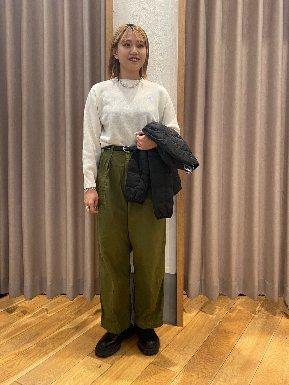 yoshimi(fredy 横須賀店)のダウンジャケット/コート「【別注】【TAION×fredy emue】ライトダウン ラウンドネック」を使ったコーディネート