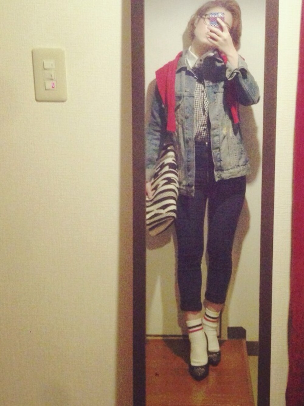 春ですね。 ギンガムですね。 shirts:主人の skinny denim:? sox:tabio heels:F21