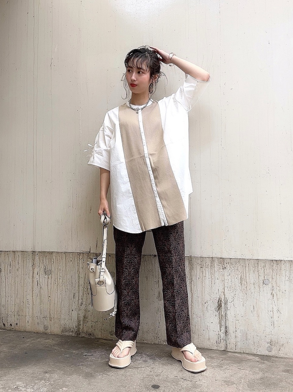 yorisa のシャツ/ブラウス「14Gニットスイッチングシャツ/952046」を使ったコーディネート