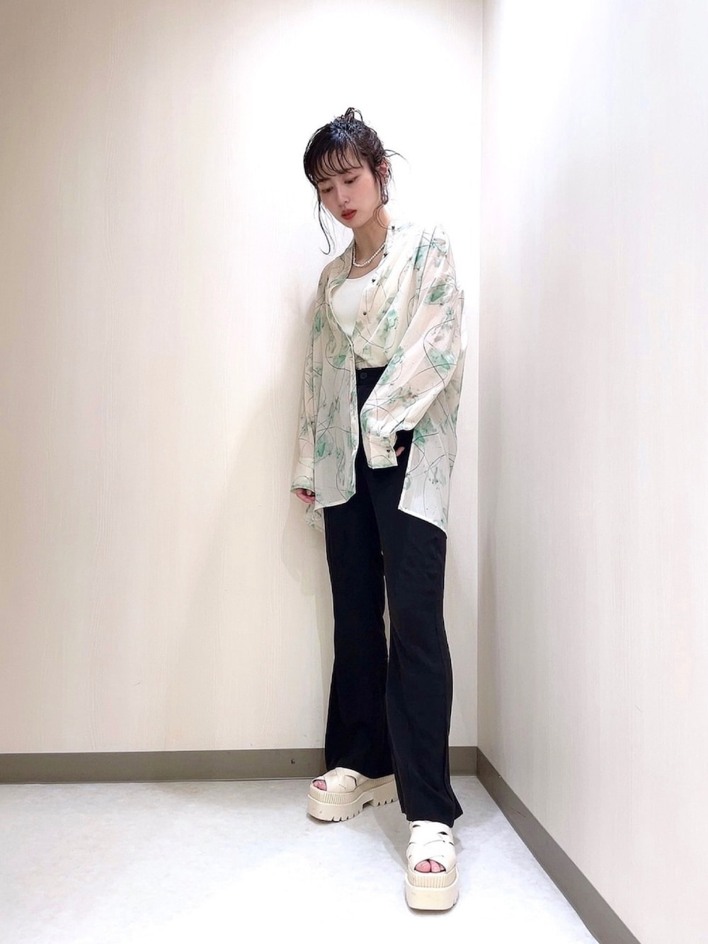 yorisa のシャツ/ブラウス「マーブルガラバンドカラーシャツ/947709」を使ったコーディネート