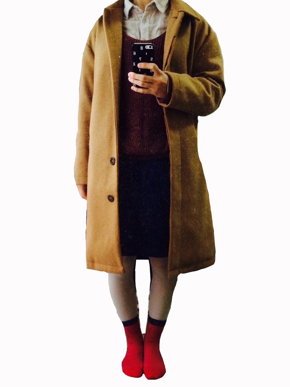 ニット:patebloom シャツ:cepo 靴下:シューケット 今日は今季初雪です。 寒いのは苦手です。