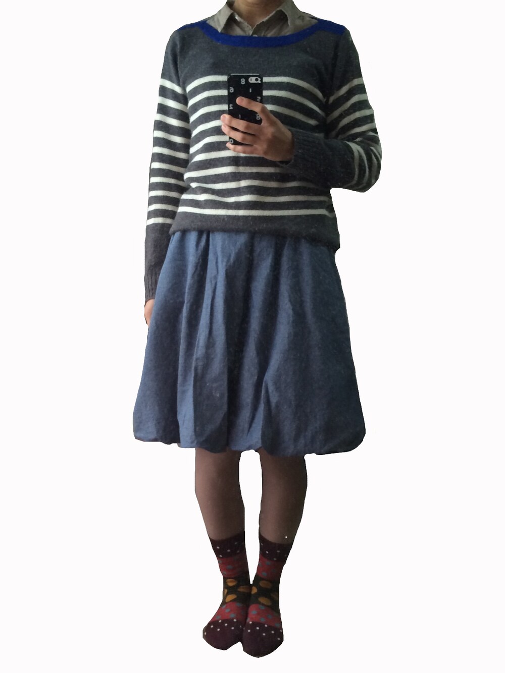 ニット: --- シャツ:patebloom タイツ:シューケット 靴下:シューケット 久々のスカートです。 どの季節もボーダーには 惹かれてしまいます◎